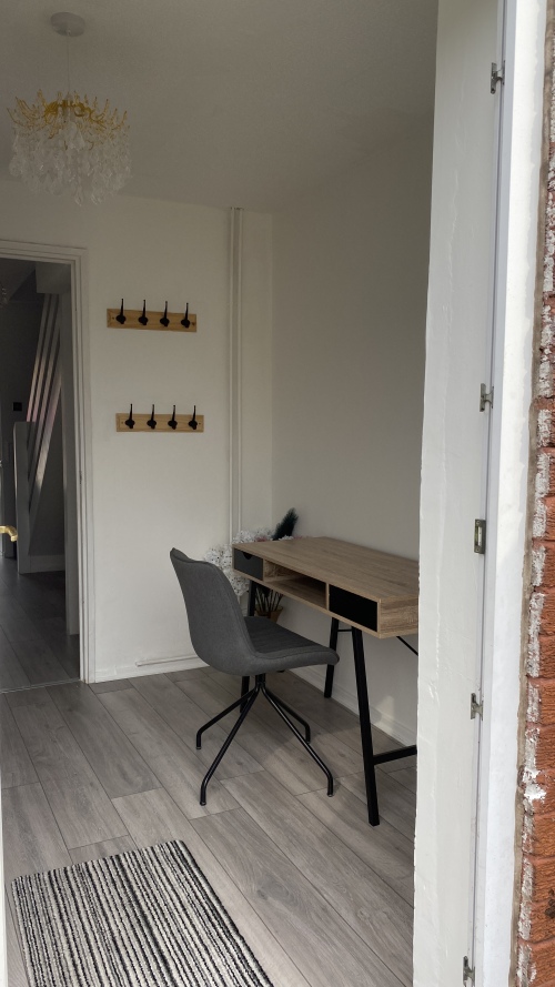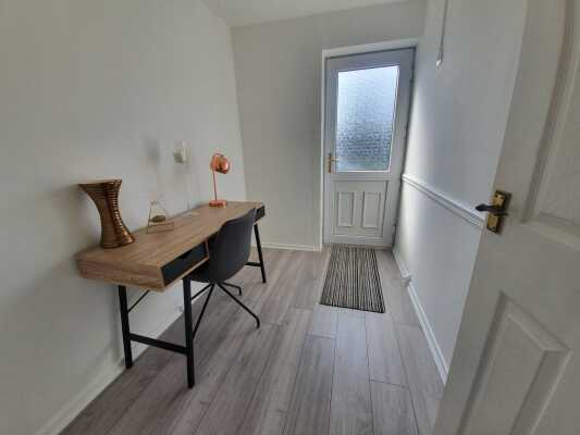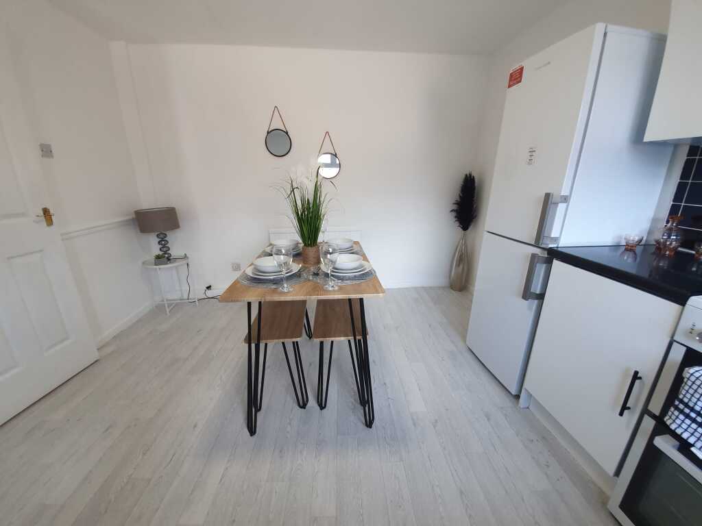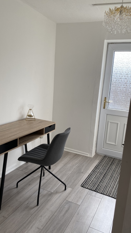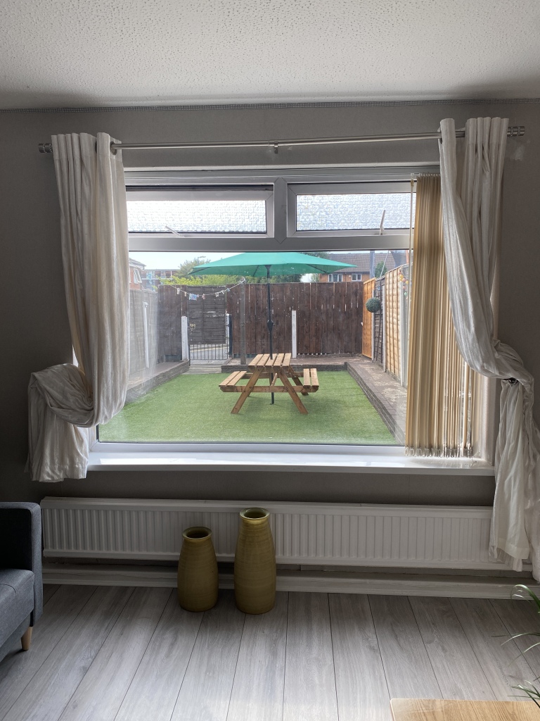 This stylish 3-bedroom/1-bath come with 3 single bed 2 sofa beds and 1 kingsize bed is clean and able to sleep 7 guests comfortably. A very Spacious house comes with a big garden and a spacious living room with a 55-inch TV with fire stick loaded with plenty of movie apps. Free coffee, and tea, are included. The kitchen is fully equipped for all your cooking needs with appliances and utensils. The bathroom includes a dispenser with soap, shampoo, and conditioner.