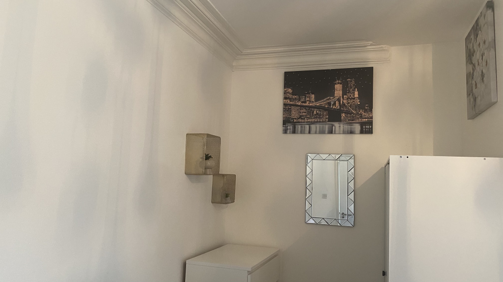 This stylish clean 1-bed/1-bath Ensuite Room, conveniently located 1.8 mile from the town centre, and able to sleep 2 guests comfortable. . There is a double bed and mattress and small table and chair.