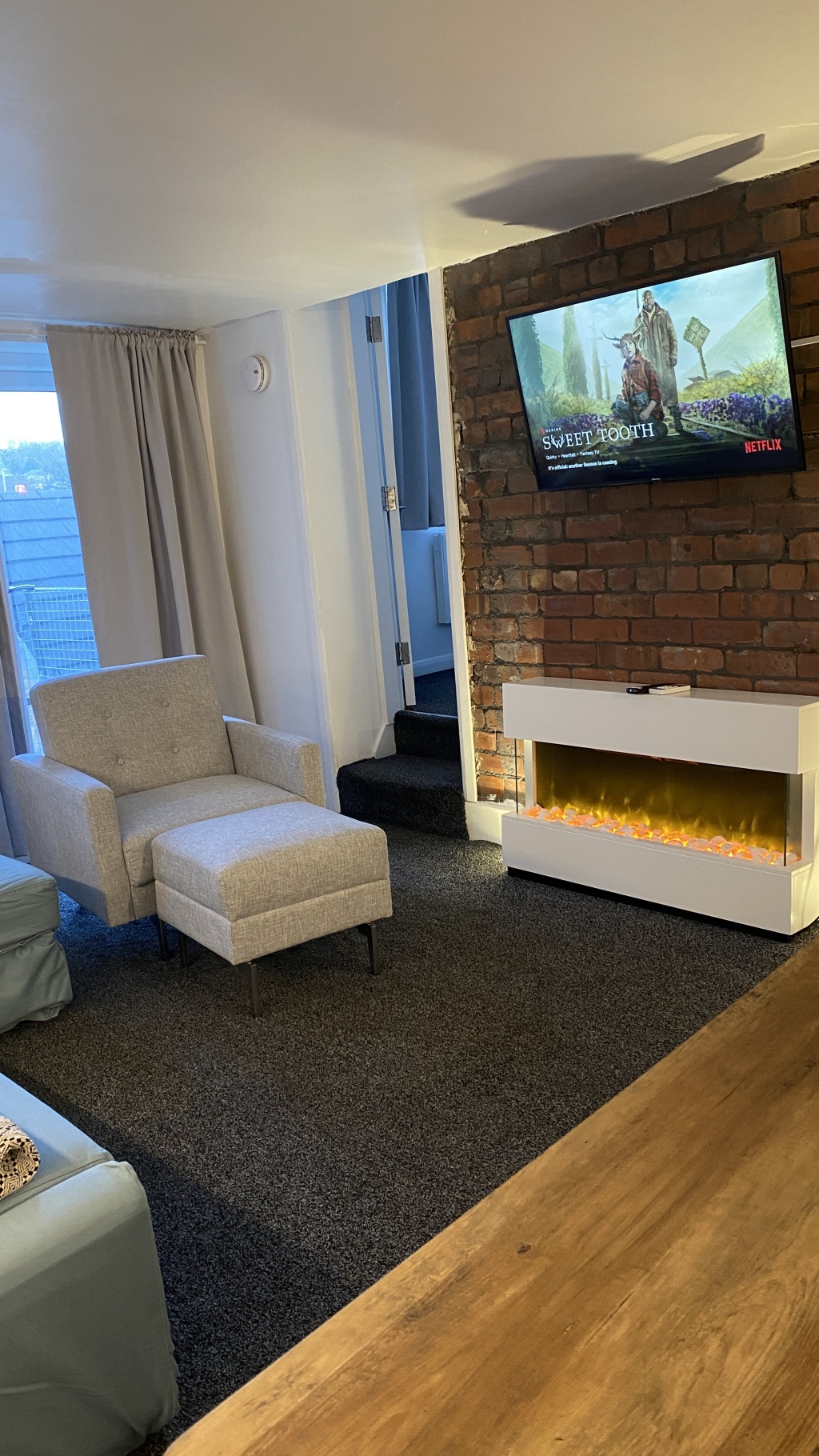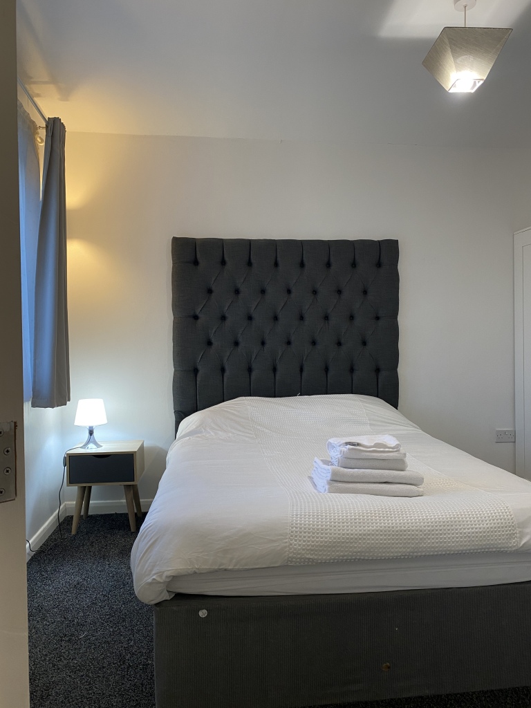 This 1-bed/1-shower apartment is located approximately 10 mins away from Huddersfield town centre by car or local transport. There is a retail park minutes away from the building which is home to many shops and fast food outlets. The open-concept kitchen, dining room, and living room are spacious for 2 guests and large enough to accommodate 4 guests with a sofa bed.